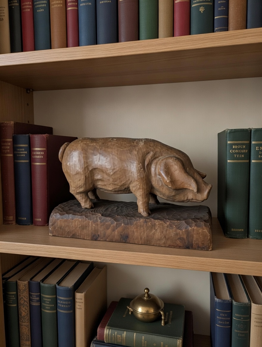 Uit hout gesneden varken. VERKOCHT